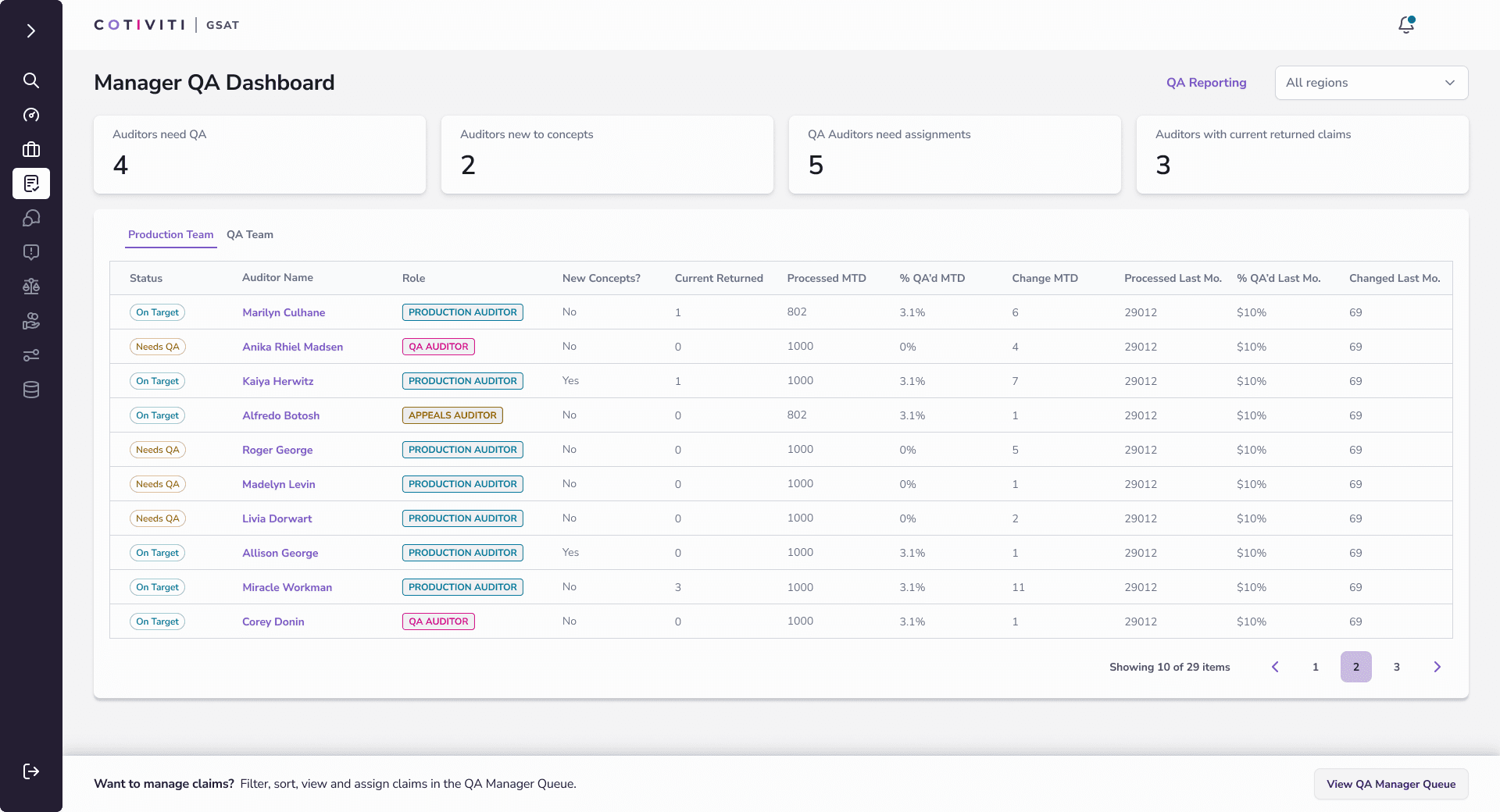 Healthcare claims auditing is a complex and and high-stakes process. Every reviewed claim has financial impacts across payers, providers, and members. The audit QA team is responsible for checking the work of the initial auditors to ensure there were no errors and nothing was missed. Their work ensures compliance with Centers for Medicare & Medicaid Services (CMS). But, the system they rely on is scattered across legacy applications, spreadsheets, and emails. QA Managers must make sure initial auditors have at least 10% of their claims QA’d each month, but they are tracking these assignments by memory and manual calculations. QA Auditors experience overly-complicated check-out processes. Simple tasks become slow and error-prone.